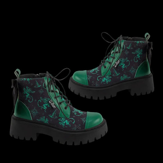 Hot Chocolate Design "Emerald Witch" Green/Black Women's Boots